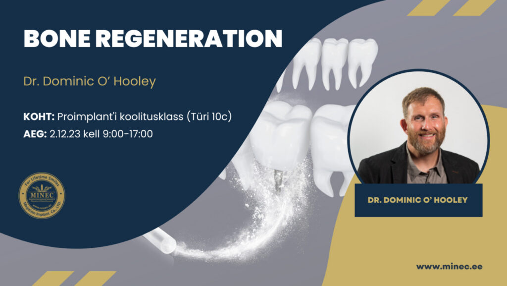 BONE REGENERATION, teaduslik ja kliiniline ülevaade uutest sünteetilistest materjalidest ja kirurgilistest protokollidest EthOss materjal on viimastel aastatel oluliselt populaarsust kogunud ning kliinikud on proovinud erinevaid raviviise, et uurida selle võimalusi. Siiski on piiride katsetamine viinud mõnikord ettearvamatute tulemusteni. Dominic keskendub kõige olulisematele reeglitele, mida meeles pidada tulemuste tagamiseks, mitte ainult lihtsate juhtumite korral, vaid ka selleks, kuidas suurendada ravivõimaluste valikut EthOss’iga. Kursus hõlmab ka praktilist osa, kus dr O´Hooley uurib meie arstide läbiviidud juhtumeid, mis on kas ebaõnnestunud või andnud osalisi tulemusi. Nende juhtumite kaudu õpime, kuidas vigu vältida ja saavutada optimaalseid tulemusi laiemas valikus ravivõimalusi. Kaasaegses hambaimplantoloogias, nagu ka ortopeedias ja regeneratiivses meditsiinis, on meie eesmärk taastada kaotatud luu vorm ja funktsioon, et saaksime oma patsientidele tagasi anda täpselt sama ja terve luukoe, mis suudab ümber kujundada ja kohaneda ülekantavate oklusioonijõududega. Ainult võõrustaja ise saab luu taastada, seetõttu eriti esteetilises tsoonis peame optimaalsete pikaajaliste tulemuste saavutamiseks töötama patsiendi enda luu paranemise nimel ja seda reguleerima. Uue põlvkonna uudsed alloplastilised materjalid võivad esile kutsuda kontrollitud toime ja reaktsiooni peremeeskoe keskkonnale, samal ajal näidates üles kontrollitud keemilist lagunemist ja resorptsiooni, mis lõppkokkuvõttes asendatakse uue luuga. Kui meie kui kirurgide eesmärk on luu regenereerimine, tuleks kasutada täielikult resorbeeruvat materjali, nii et uus moodustunud luu oleks identne kaotatud peremeesluuga ja pikaajalises perspektiivis ei peaks jääma mingeid jääke transplantaadist. Mitte-resorbeeruvate transplantaadiosakeste pikaajaline lisamine augmenteeritud luusse viib ebatäieliku regeneratsioonini, seega on sellistel juhtudel sobivamad terminid luu taastamine või luu augmenteerimine. Uued sünteetilised biomaterjalid on kavandatud nii, et need ei oleks mitte ainult osteokonduktiivsed, vaid ka osteoinduktiivsed. Loengu eesmärk on arutada neid kontseptsioone ja arenguid ning tutvustada uusi minimaalselt invasiivseid protokolle, et optimeerides patsiendi enda luu regeneratsiooni.