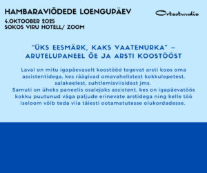 Registreerumine: | https://ortostuudio.ee/koolitused/hambaraviodede-sygisene-loengupaev-2025/ mai@ortostuudio.ee |